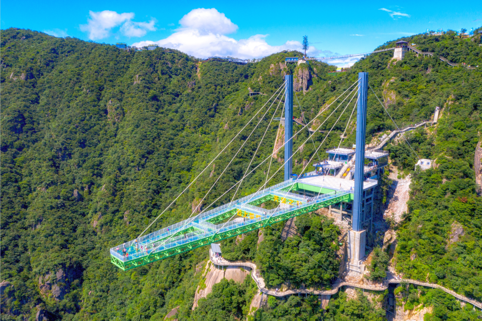 橋身全長(zhǎng)82米,全體透明。行走其間如同凌空漫步、踏云破霧,男女老少幾乎人人都可體驗(yàn)的高空玻璃棧橋。